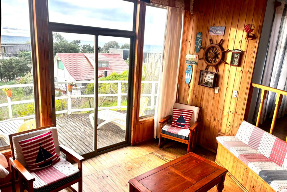 Brunopropiedades vende una acogedora casa con vista al mar en playa Punta Sirena, en la comuna de Pelluhue región del Maule. La propiedad se encuentra situada a 200 m de la playa a orilla de ruta asfaltada.