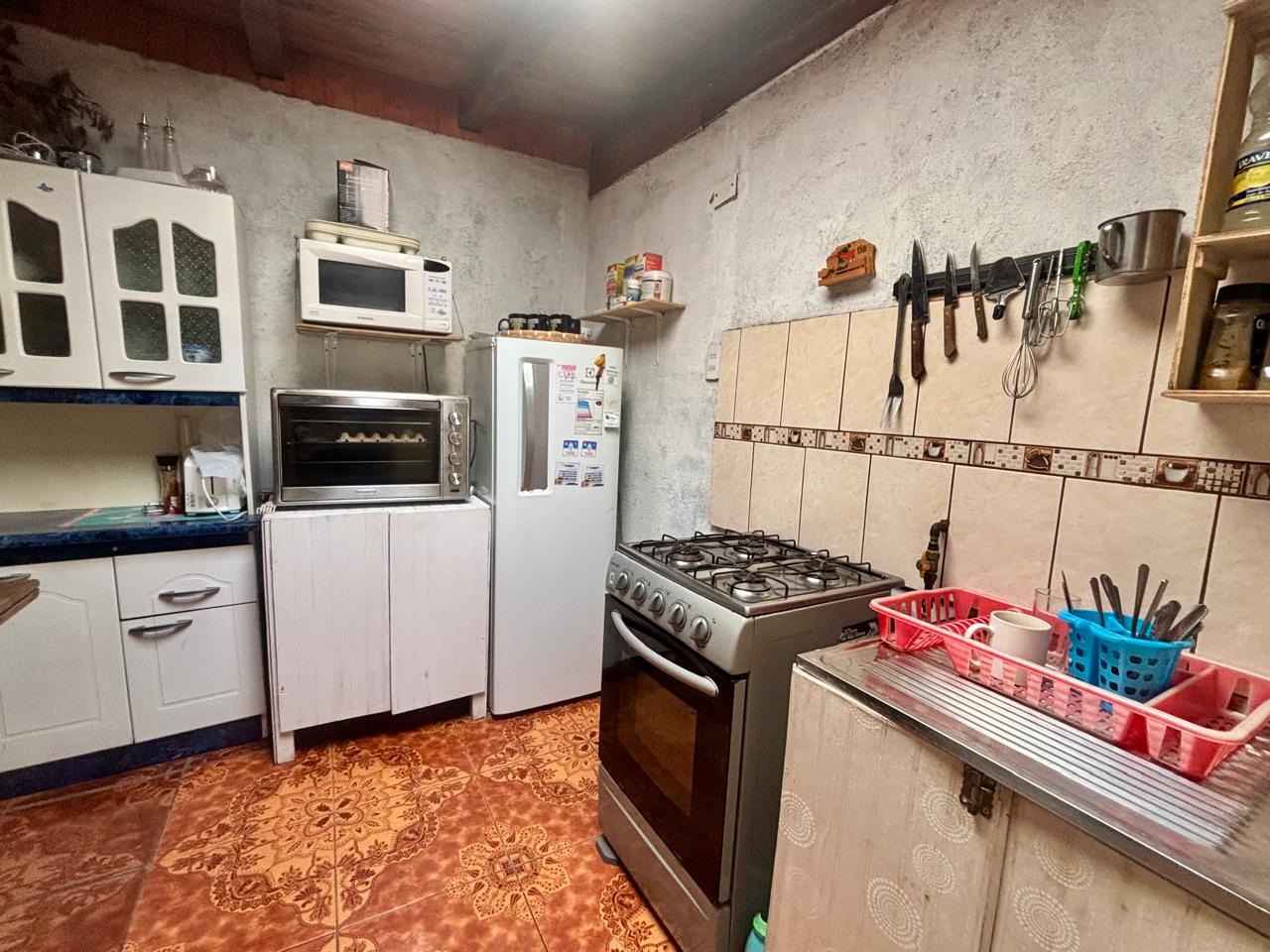Sala de estar comedor, amplia cocina equipada, 1 baño de visitas y estacionamiento.
